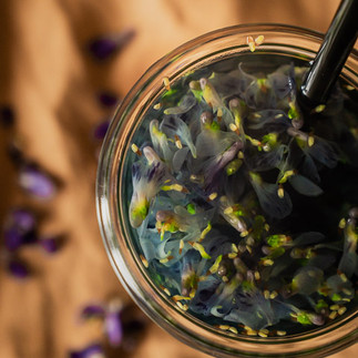 Svař vodu a ještě horkou jím přelej květy a nech louhovat alespoň 2 hodiny (já nechávám cca 12 hod). Voda se začne zabarvovat.